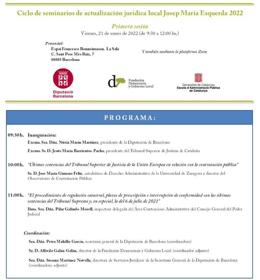 Ciclo de seminarios de actualización jurídica local Josep Maria Esquerda 2022 ? Primera sesión